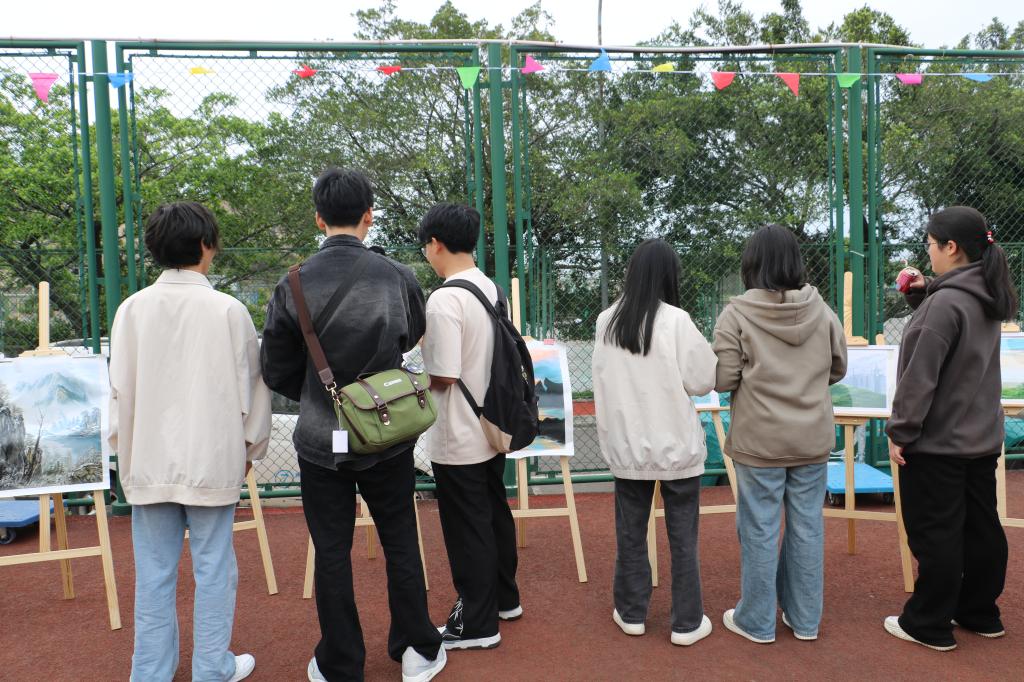 在陈列的非遗作品中,一幅幅栩栩如生的刀画作品吸引了广大师生驻足参观、购买。现场展示的画作不仅展现了山川与自然之美,同时将学校具有标志性的建筑元素融入刀画中,让校园美景定格。现场的刀画作品集油画和国画之长,以调色刀镌刻纹理,用画笔渲染色彩,别致的减色画法诠释了别样的艺术。