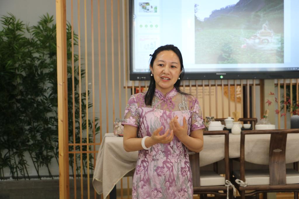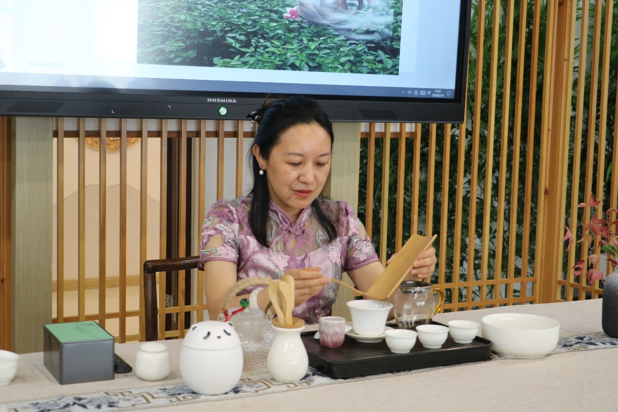 在茶艺课堂上,庞老师不仅解释了茶的渊源,还多次“以茶论道”,向同学们阐释茶中蕴含的文化内涵。庞老师耐心细致的讲解,举手投足间,尽显中国传统文化之美,带领同学们打开了茶世界的大门。