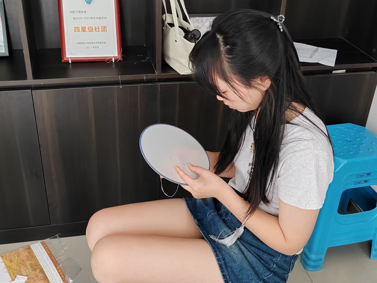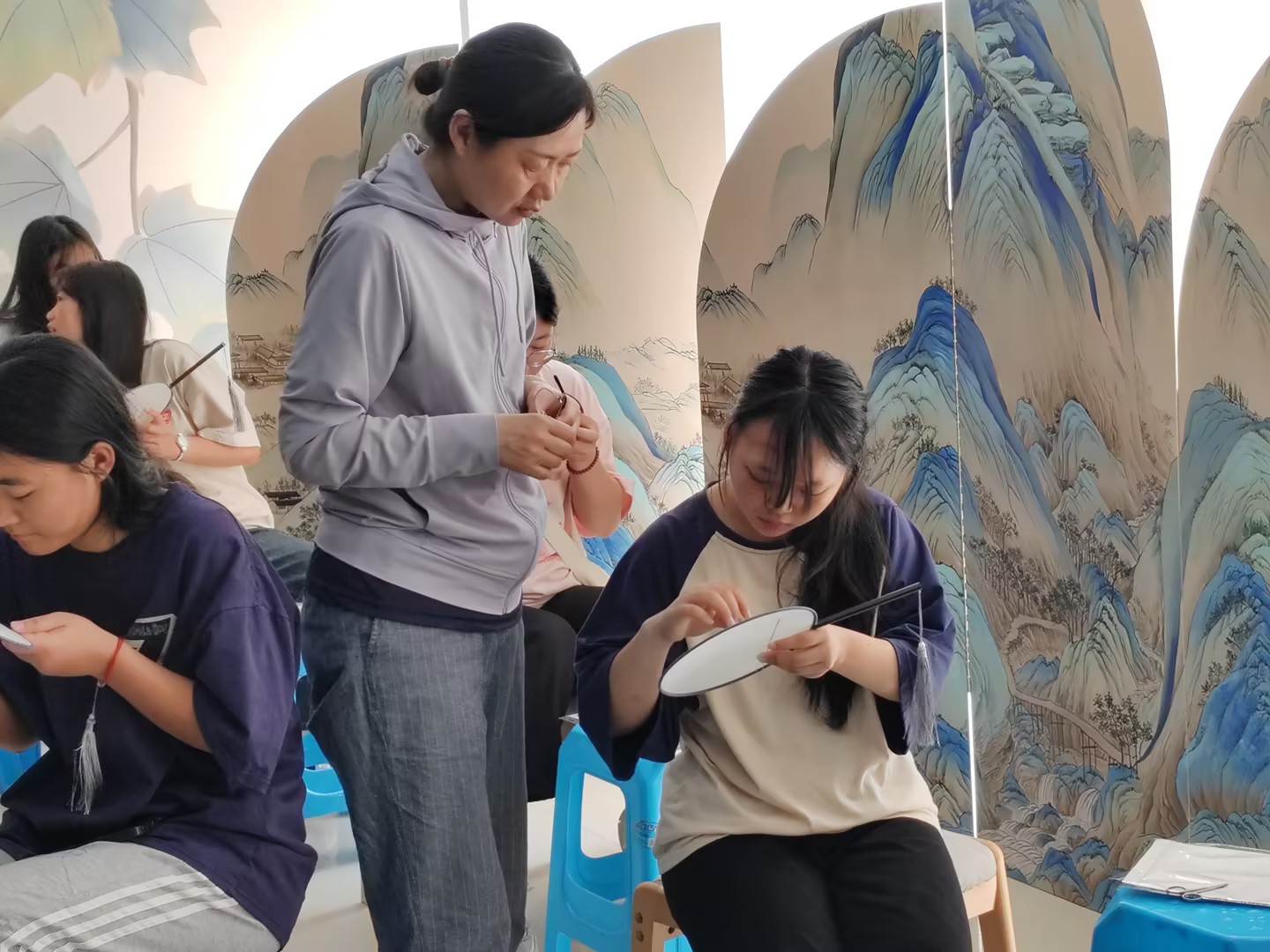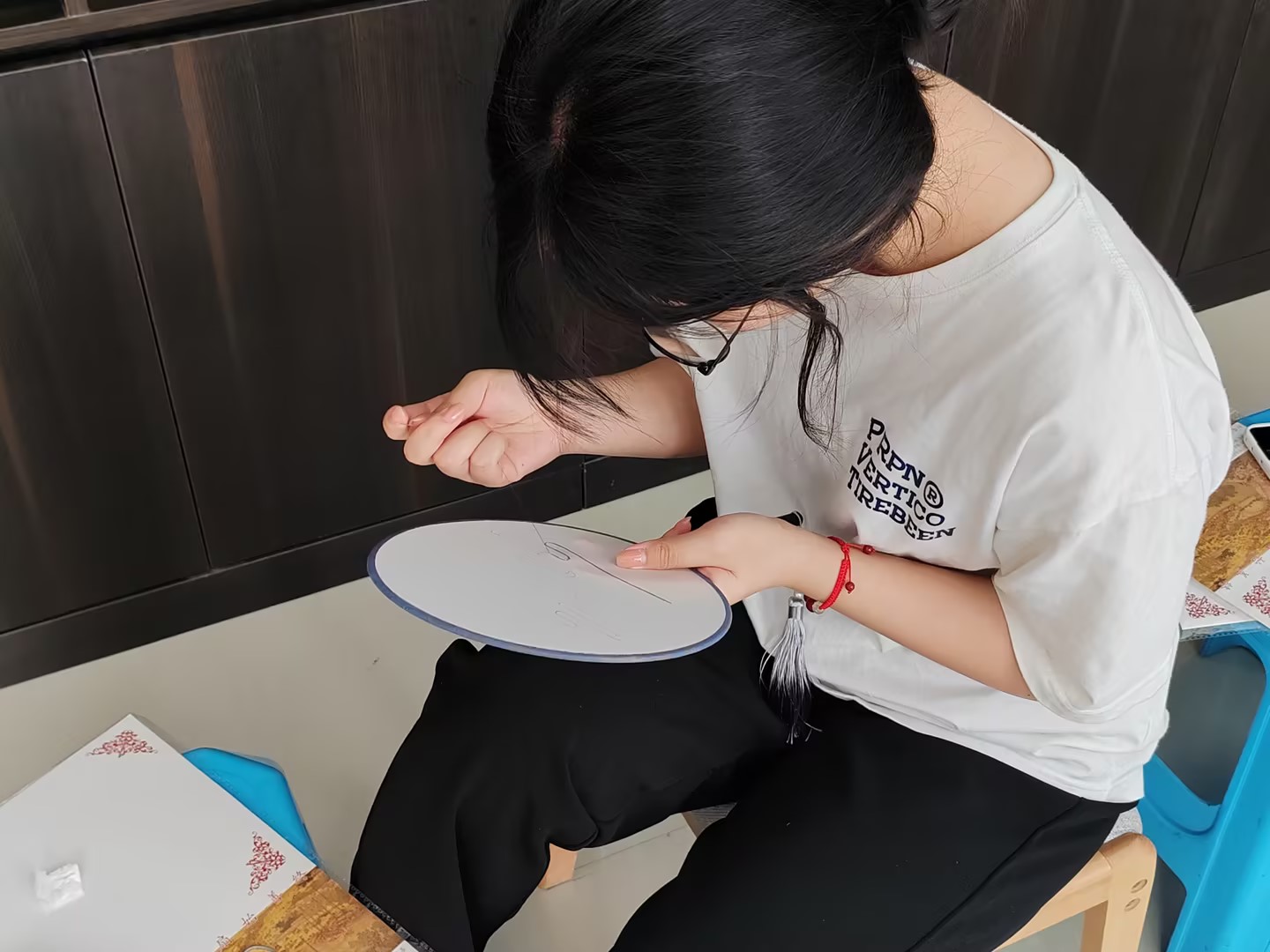 在老师耐心细致的指导下,同学们纷纷在绣布上开始刺绣实践。他们专心致志、不急不躁地开始穿针走线,绣出专属于自己的蜀绣作品。