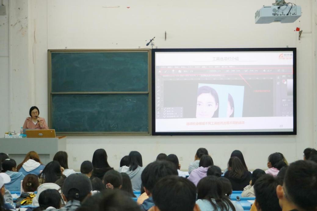 在整场讲座中,郝老师用幽默的语言向同学们展示了PS的相关功能以及使用方法,将同学们带入了轻松有趣的演讲氛围中。同学们的认真聆听和与老师的热情互动,也将讲座的气氛逐渐推向了高潮。