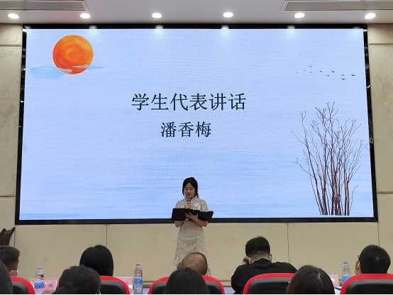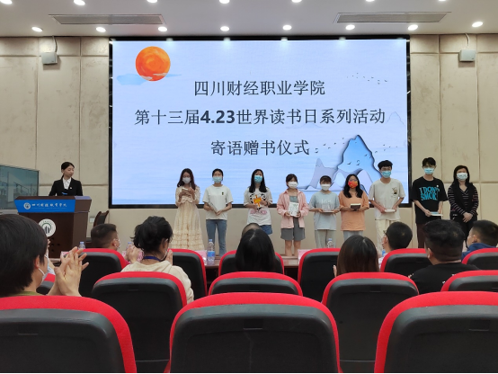 活动现场,财税学院2021级财税大数据应用1班赵琳琳、信息学院2021级会计信息管理2班彭禹杰朗诵《读中国》,财税学院2021级财税大数据应用1班的学生代表潘香梅在发言中宣传读书之美、读书之妙。现场还抽取幸运观众进行寄语赠书。