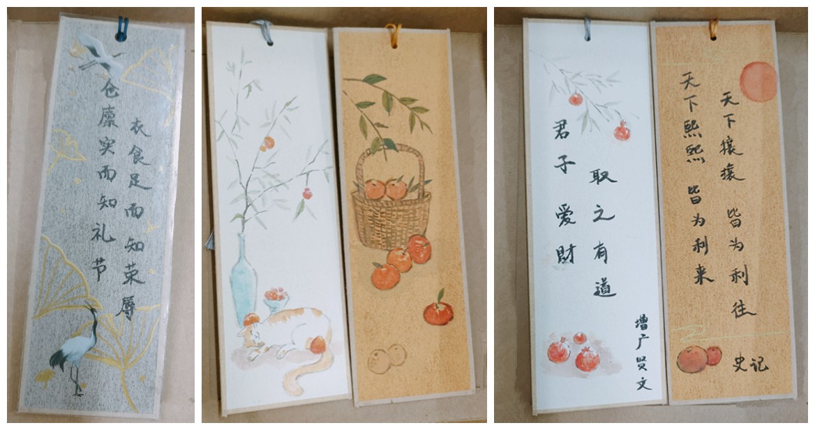 2022年5月5日-10日,为了给同学们带去美的享受,特地举办的书签设计比赛,只为给大家带去精神上的一份盛宴。本次活动以“中华财经经典名句”为主题,同学们自行DIY书签,要求有自己的设计感,以个人名义参赛。设计图要求书签长不超过20cm,宽不超过10cm。内容积极向上,将自己喜欢的中华财经经典的名句名言写在精心制作的书签上与大家分享,要求版面精心设计,围绕主题选择内容。书签材料要求有一定硬度的纸均可,也可用其他材质结合制作,例如彩带、金粉、标本、丝线、塑料等。可尽情发挥自我想象力和创造力。