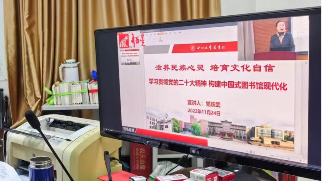 2022年11月24日下午,四川省高校图书情报工作指导委员会联合四川大学图书馆举办了学习贯彻党的二十大精神宣讲会。