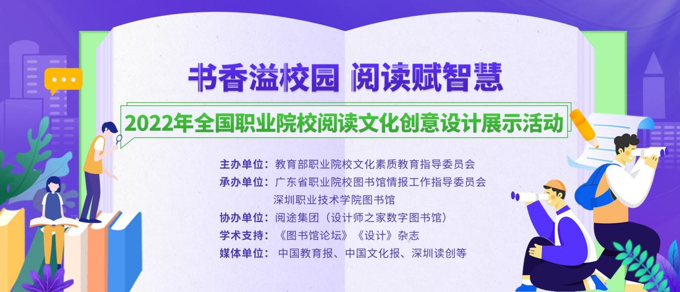 为深入贯彻中共中央办公厅、国务院办公厅《关于全面加强和改进新时代学校美育工作的意见》、中央宣传部《关于促进全民阅读工作的意见》,培养职业院校师生创新精神和艺术设计能力,营造关注阅读、热爱阅读、传播阅读的良好校园文化,推动全民阅读,建设书香校园,决定举办2022年全国职业院校阅读文化创意设计展示活动。