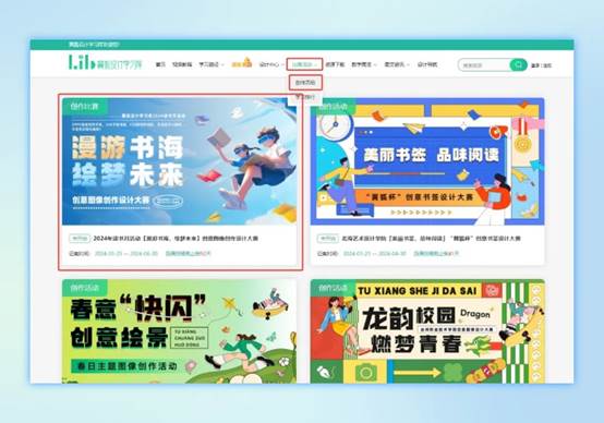 3、通过图书馆官网,找到“翼狐设计学习库”,进入“比赛活动”-“创作活动”找到活动入口即可参与。