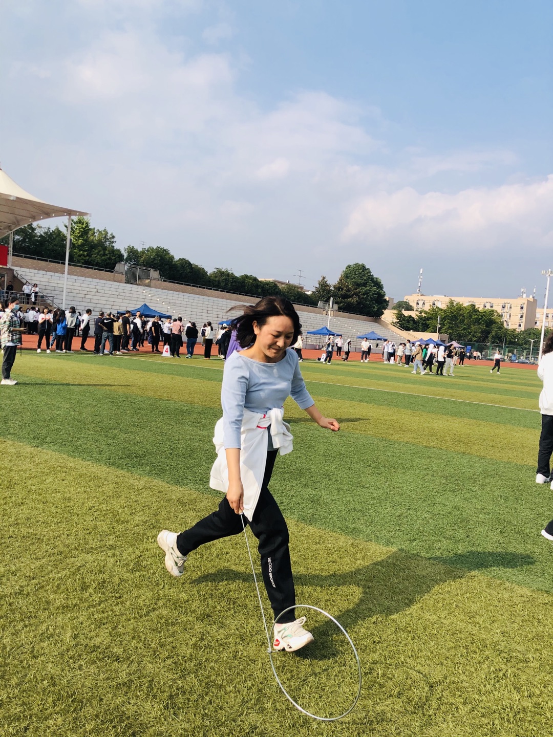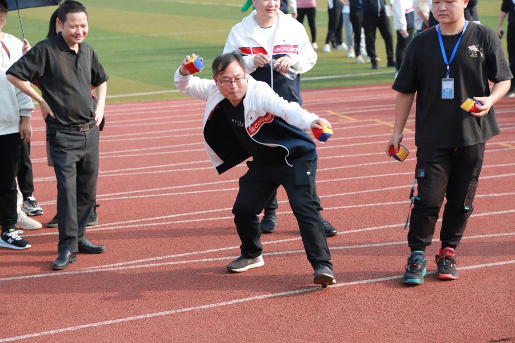 本次运动会项目设置既注重体育运动的竞技性,又注重体育运动的趣味性。团体项目有无敌风火轮和夹纸竞走,个人项目有踢键子、丢沙包、袋鼠跳、乒乓球垫球。赛场内教职工们奋力比拼、团队合作,互相加油喝彩,整个运动场成了欢乐的海洋。