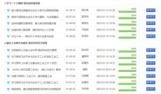 本期培训课程既有专家解读二十大精神、《工会法》等政策性学习,又有如何做好教代会提案以及如何建设智慧工会等务实性学习。本次培训分为课程学习、研修总结二个教学环节。