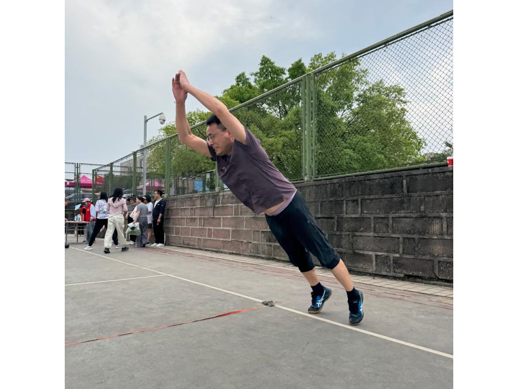 下午2点,运动会在热烈的氛围中拉开帷幕。首先进行的是个人项目比赛,室外篮球场上,各年龄组的教职工们热情高涨。立定跳远区域,选手们个个身姿矫健,如同离弦之箭般全力一跃,在空中勾勒出一道道优美的弧线。落地的瞬间,扬起的尘土仿佛也在为他们的拼搏喝彩。