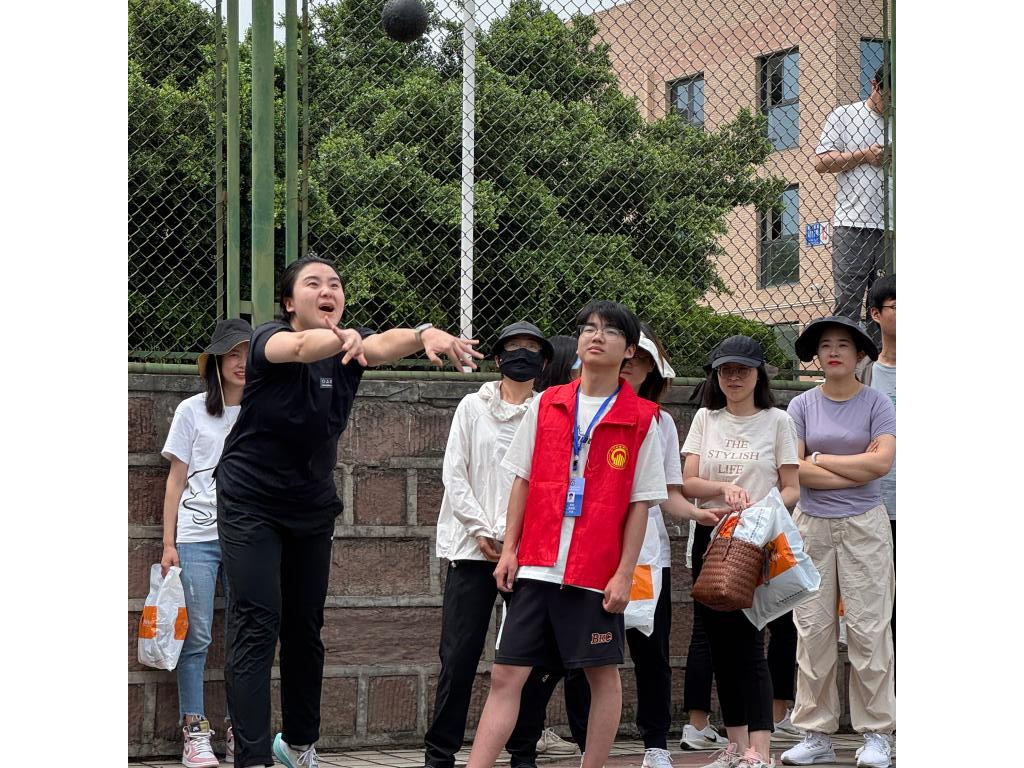 实心球投掷区同样精彩不断,参赛者们将球举过头顶,正对投掷区奋力发力,实心球在天空中飞速划过,在空中留下一道道有力的轨迹,引得周围观众阵阵惊叹。