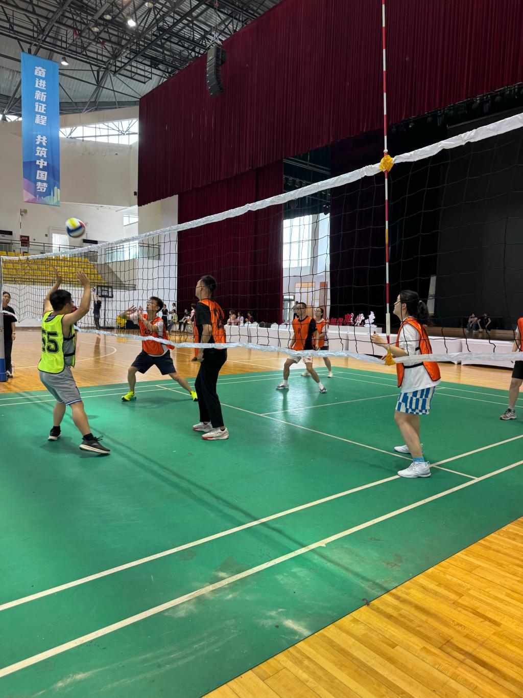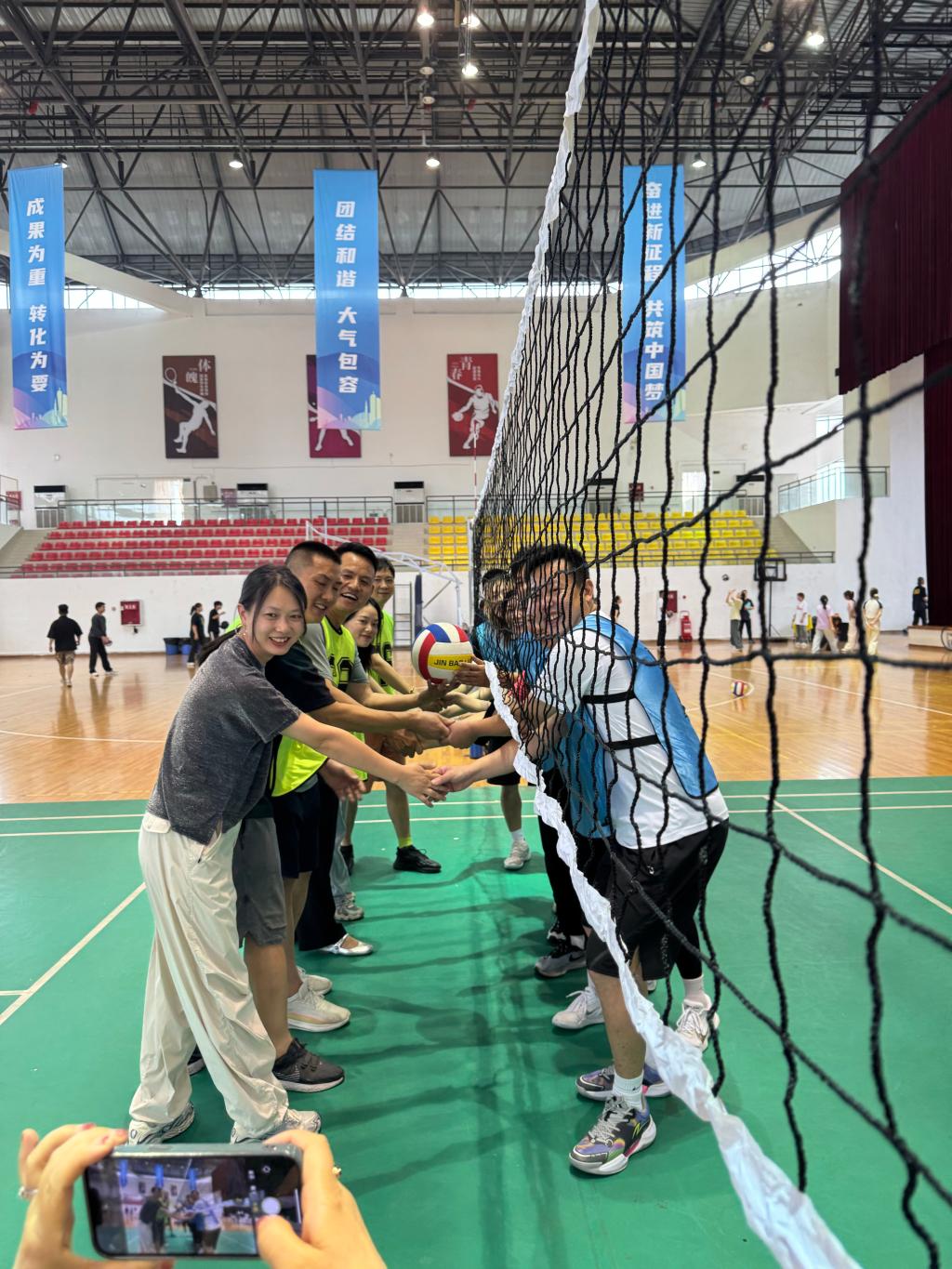 教育的激情不仅在讲台,也在比赛中每一次跃起扣杀的弧线中。本次比赛采用三局两胜制,规则兼顾专业性与趣味性,吸引了全校教职工热情参与。赛场上,队员们默契配合、奋勇拼搏,发球精准、拦网果断、扣杀有力,展现出团结协作的精神风貌。