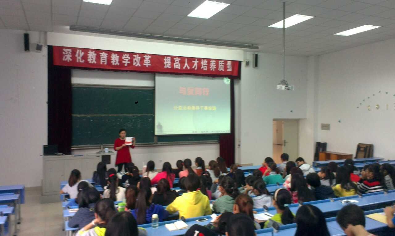2013年10月24日,思政部开展了一次关于“与爱同行”专题培训会议,担任此次培训会的讲师是思政部的陈鸾老师,参加此次会议的有,院团委青年自愿者协会的全体成员以及2013级每个班的班长和思政课代表。