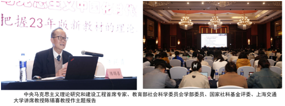 会议开幕式由四川省高校“概论”课教学研究会会长、电子科技大学马克思主义学院党委副书记商继政教授主持。随后,中央马克思主义理论研究和建设工程首席专家、教育部社会科学委员会学部委员、国家社科基金评委、上海交通大学讲席教授陈锡喜教授作了“从‘马克思主义的中国化’到‘马克思主义中国化时代化’——把握23年版新教材的理论思考”主题报告,对与会学者们全面深刻理解党的二十大精神、推进习近平新时代中国特色社会主义思想的“三进”工作和相关课程建设具有很强的指导意义。