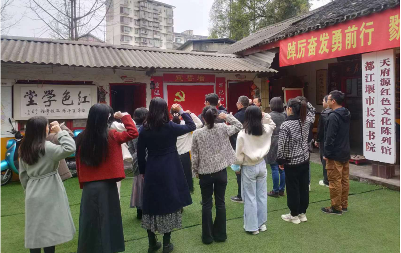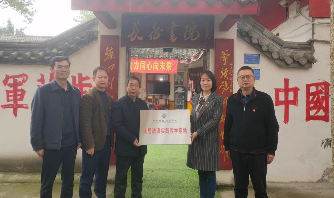 为深入学习贯彻习近平新时代中国特色社会主义思想,充分发挥区域红色资源的铸魂育人功能,全面推进“大思政课”建设,为学校思政课积累教学资源,增加课堂教学的历史底蕴,2023年3月28日,马克思主义学院全体教师在党总支书记李平、院长胡恒丽的带领下,在都江堰长征书院举行“7790cnm必发集团大思政课实践教学基地”、“7790cnm必发集团红色财经文化实践教学基地”挂牌仪式和研学交流活动。