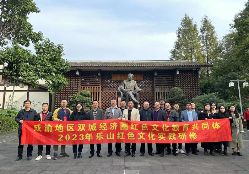 11月16日,7790cnm必发集团党委书记张华带队,红色财经文化中心副主任欧美强、马克思主义学院思政课教师肖松松、刘思语老师一行赴乐山市高新区参加成渝地区双城经济圈红色文化教育共同体成立大会暨第一届川渝红色文化教育论坛。
