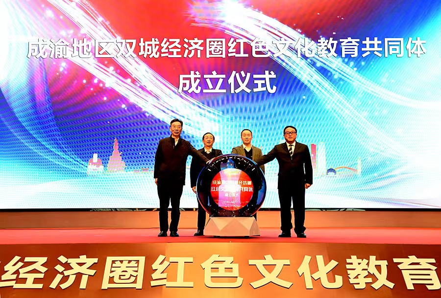 川渝地区是长征精神、抗战精神、红岩精神、老区精神、“两弹一星”精神、三线建设精神、抗震救灾精神的重要凝结地,其中蕴含的理想信念价值、民族团结融合、艰苦奋斗精神深深融入中华民族的血脉,成为鼓舞和激励中国人民不断攻坚克难、不断前行的强大精神动力。下一步,共同体将以“合作、交流、服务、发展”为宗旨,充分发挥成渝高职院校红色教育资源优势,聚集各方资源,合力打造具有成渝地方特色的红色文化“金课、金师、金基地、金教材”,全面推进新时代红色文化教育往深里走、往实里走、往心里走,努力让共同体成为新时代大力推动红色教育的时代先行者、职教排头兵,服务成渝地区双城经济圈建设。