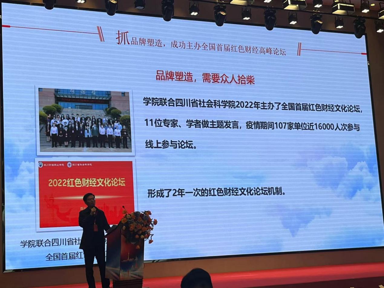 成立大会结束后,“共同体”各理事单位成员教师代表召开了第一届川渝红色文化教育论坛,重庆城市管理职业学院、成都航空职业技术学院等15个理事会单位的马克思主义学院代表在论坛上进行了交流发言。作为副理事长单位,红色财经研究中心副主任欧美强博士代表我校作了主题为“红色文化的川财实践与思考”的发言交流。