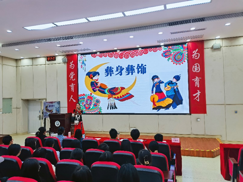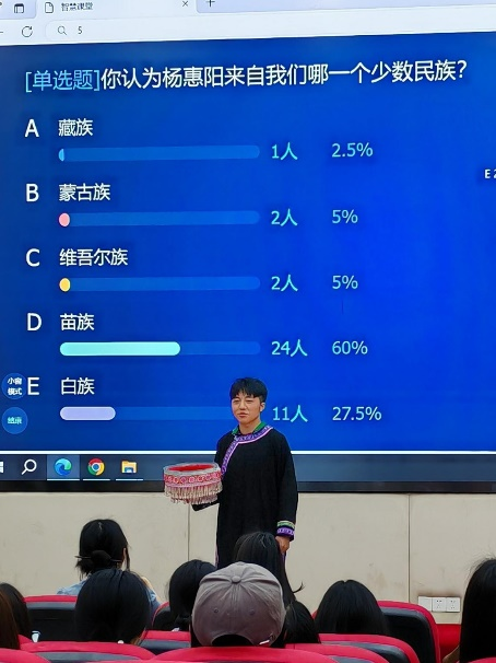 4月11日,在马克思主义学院陈鸾老师的带领下,来自我校会计和工商学院的八名少数民族学生前往2023级会计学1班,进行了一场别开生面又美轮美奂的民族文化宣讲展示活动。