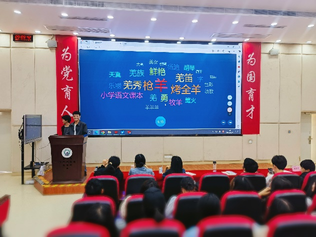23级电商3班的杨慧洋身着苗族传统服饰,带着一顶工艺精美的苗族银饰头帽入场,以“猜猜我来自哪个民族”的巧妙互动开场,瞬间拉近了台上台下的距离,将同学们引入乐山玛瑙苗寨的独特风情中。他从蚩尤大战黄帝讲到今天的非物质文化遗产——苗绣,通过一张张吉光凤羽的服饰图案向大家展示苗族人是如何把历史穿在身上。此外,还向大家介绍了自己作为少数民族学生“与你不同,也与你相同”的成长轨迹。