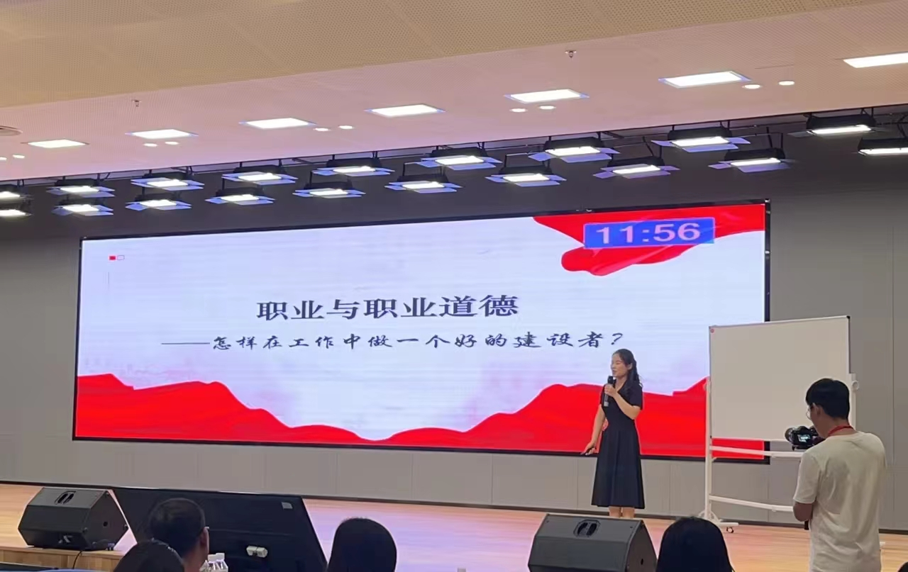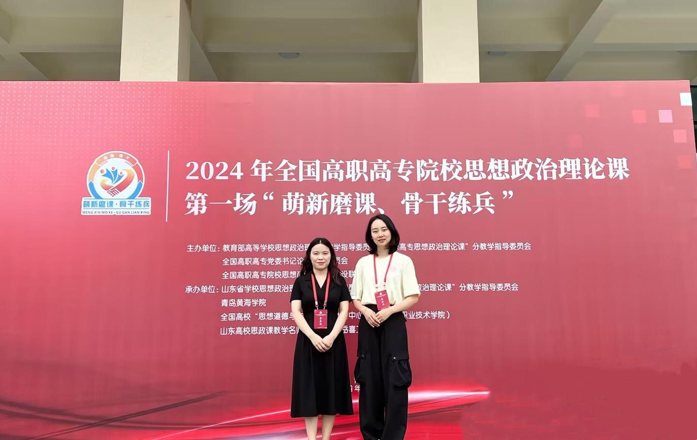 6月22日,2024 年全国高职高专院校思想政治理论课第一场“萌新磨课、骨干练兵”活动在青岛黄海学院举行。来自全国23个省、自治区、直辖市的106所马克思主义学院的负责人、思政课骨干教师和青年教师代表近300人参加活动。我院思想道德与法治教研室主任滕栩、青年教师刘秀,参与了此次展示活动。