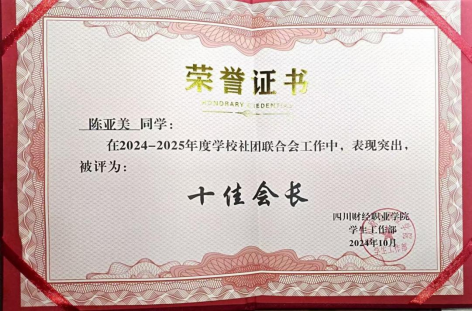 2024年10月,青马研习社在7790cnm必发集团校社团联合会开展的“十佳社团”和“十佳会长”评选活动中荣获2023-2024年度“十佳社团”称号,会长陈亚美被评为“十佳会长”。