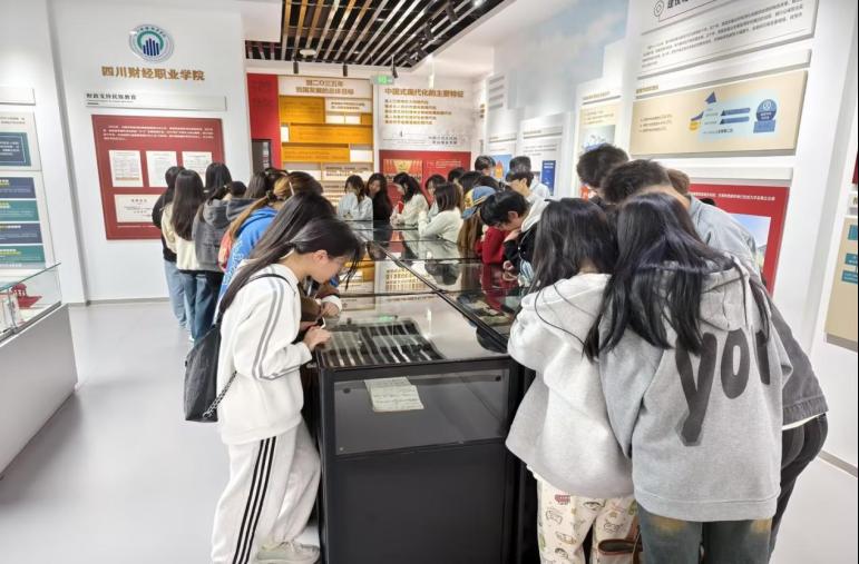 在为期一个月的展览期间,吸引了多达 2000 多人次前来参观。同学们在参观过程中表现出了极高的热情与专注度。他们穿梭于各个展柜之间,仔细端详每一件展品,不时地与同伴交流讨论自己的感悟与发现。对于同学们而言,这次展览不仅仅给同学们带来一次视觉上的红色冲击,更是一次深入学习红色财经历史文化的宝贵机会。通过亲身体验,他们更加清晰地理解了建国前后红色财经在战争支持、经济恢复、社会建设等多方面所发挥的关键作用,深刻领悟到红色财经文化所蕴含的艰苦奋斗、勤俭节约、开拓创新等精神内涵,同时也为师生提供了一个生动的红色财经文化学习平台,并进一步提升了红色财经文化馆的知名度与影响力。