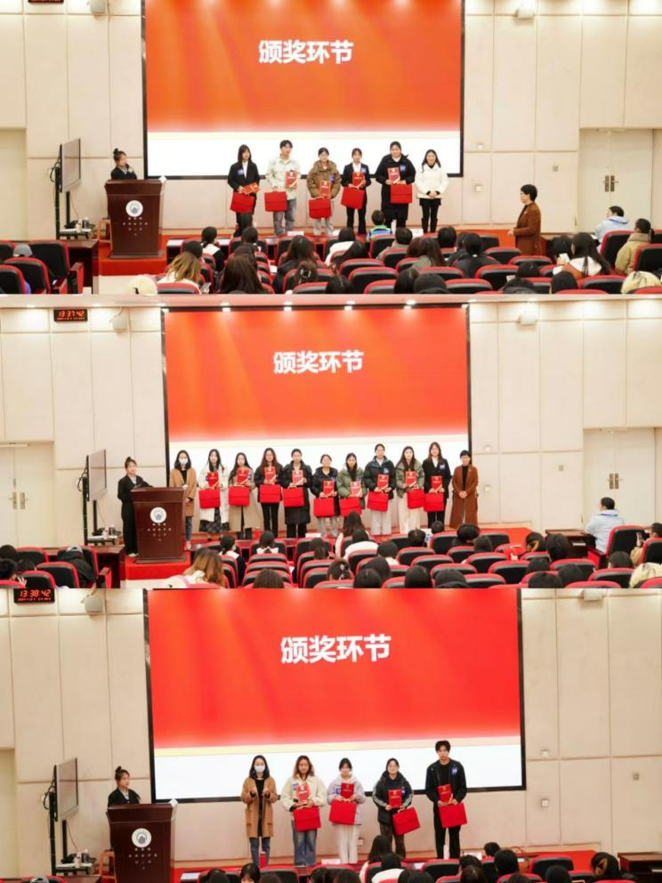 在比赛过程中参赛选手不仅展现出了自己的知识储备更是传递了红色精神。相信在同学们热烈的掌声中,参赛选手,在这一刻,不仅肩负起了新的责任与使命,也迎来了个人成长的新篇章。最后,由思想道德与法治教研室刘秀老师、滕栩老师以及钟玲老师为获奖选手颁发奖项。