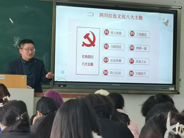 刘教授以人文之美、生态之美的四川印象讲到四川红色历史、红色人物、红色遗址、红色精神,并归纳出了四川红色故里、川陕苏区、长征丰碑等“八大”红色主题。