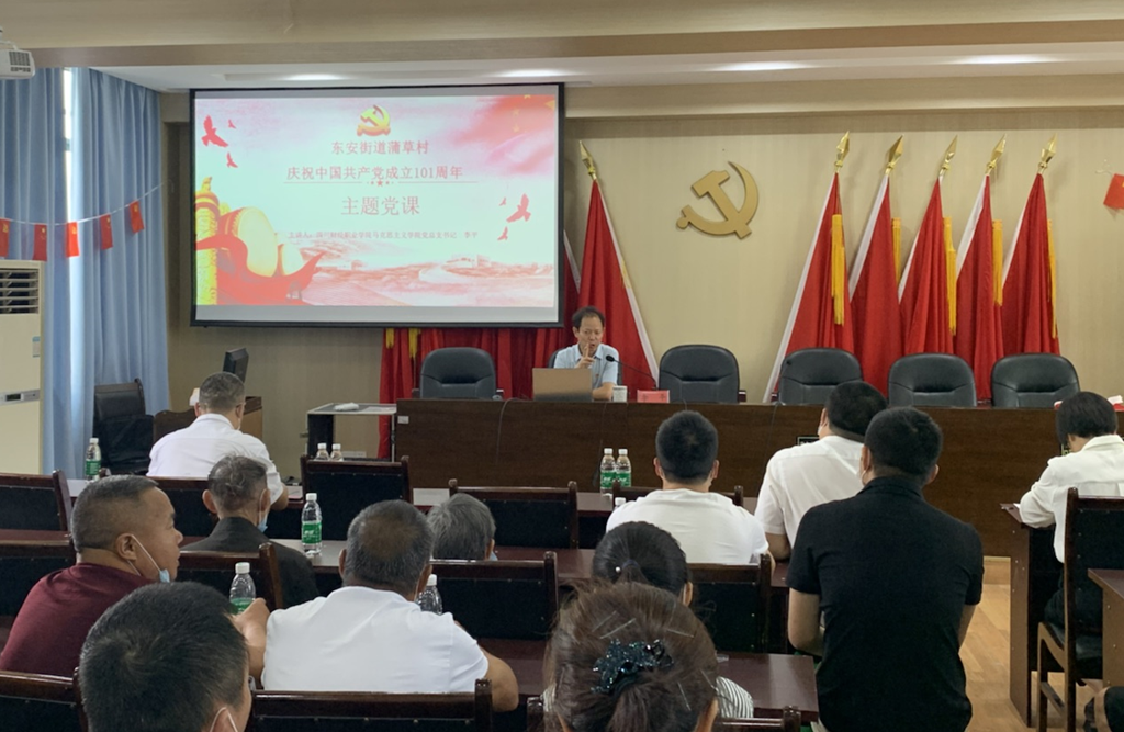 图1 李平书记为蒲草村党员开展建党101周年专题讲座