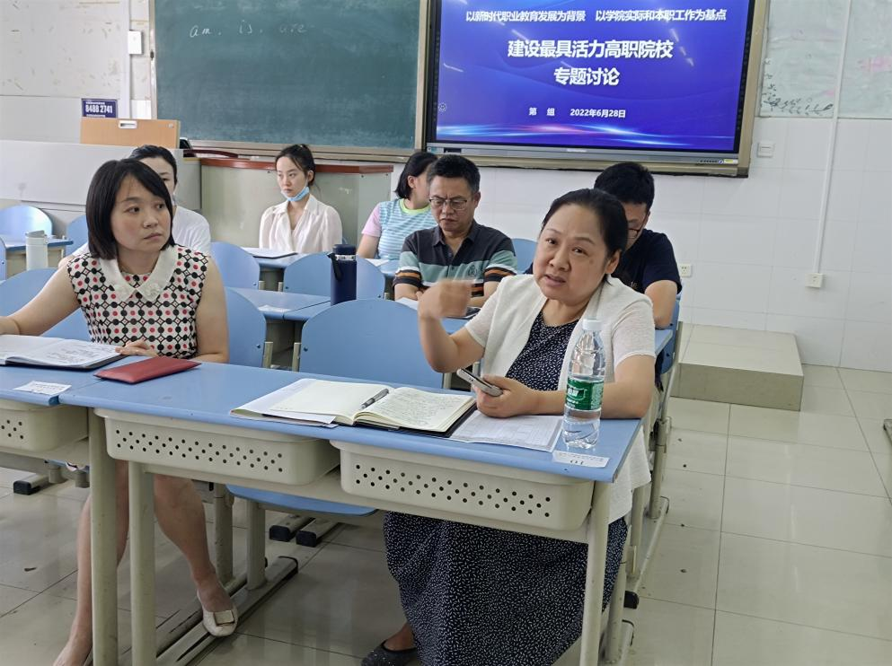 6月28日下午,马克思主义学院参加了学院组织的“练内功、拓视野,建设最具活力院校”2022年教职工能力提升暑期培训班的专题讨论活动。党委书记张华作为组长主持了本次专题讨论。