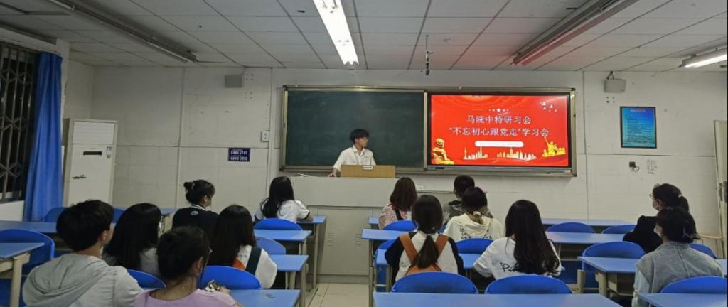 2022年4月13日晚,马克思主义学院中特研习会于B101开展“不忘初心跟党走”学习会。参与此次学习会的有中特研习会秘书长罗新川及各部门干事,本次学习会由秘书长罗新川主持。