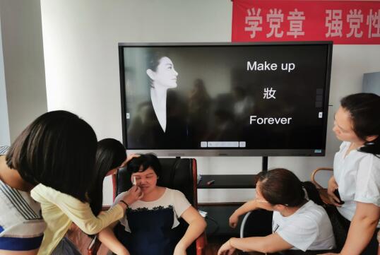 2019年6月26日下午14:00到16:00,马克思主义学院工会邀请的化妆专业讲师在812会议室给所有老师培训化妆,通过做小游戏课前预热,专业讲师讲解护肤知识,指导工会教师学习眉毛、眼线、唇部等化妆技巧,教师淡雅的妆容画法,最后工会教师一起探讨交流学习心得。