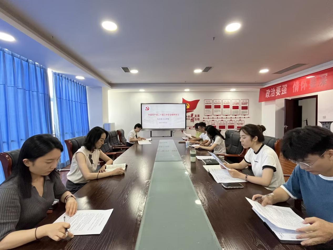 党的二十届三中全会,是在以中国式现代化全面推进强国建设、民族复兴历史伟业的关键时刻召开的重要会议。2024年9月3日马克思主义学院组织全体党员教师在明德楼813会议室集中学习党的二十届三中全会精神及中共中央、国务院《关于弘扬教育家精神加强新时代高素质专业化队伍建设的意见》。