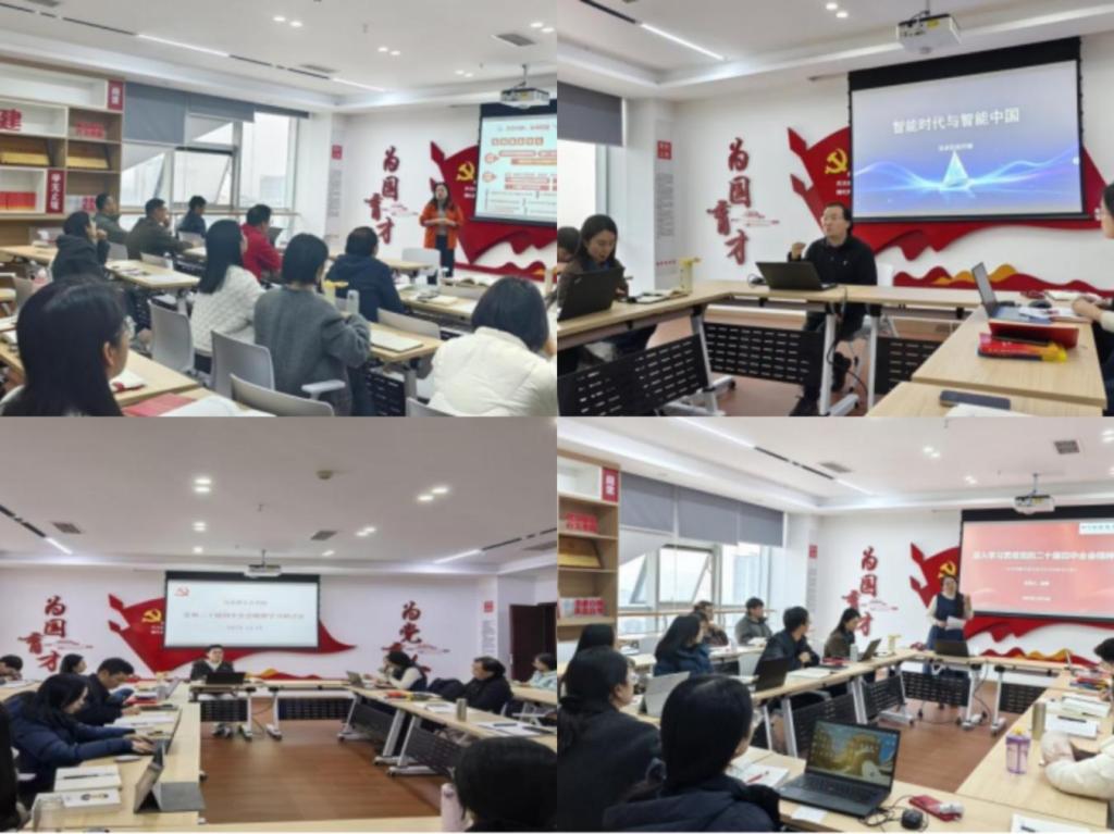 学习研讨环节,汪丽娟、张志、张春、肖松松四位教师结合自身研究领域,分别围绕“十五五”规划建议解读、智能时代与智慧中国建设、中国式现代化进程中的财经力量赋能及中国特色社会主义文化传承与发展等主题作交流研讨,为推动全会精神有机融入思政课堂、切实提升育人实效厘清了思路、奠定了基础。