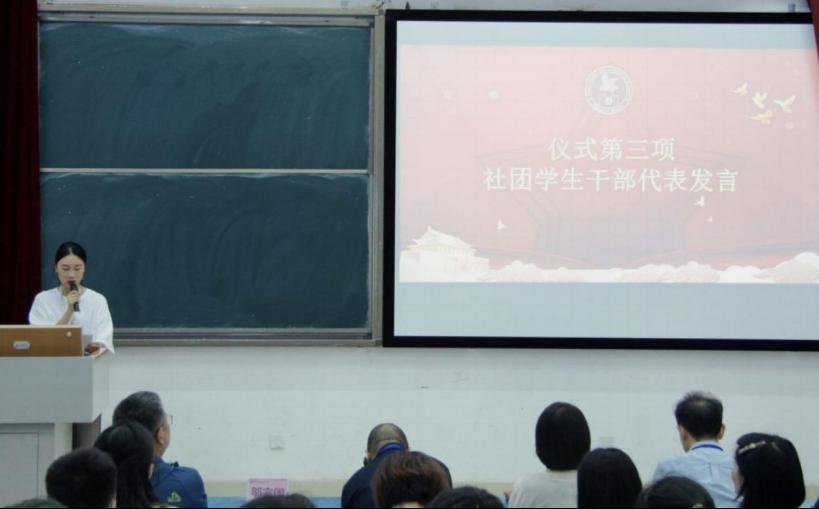 罗院长首先对本次揭牌仪式表示热烈祝贺,他表示推动社团工作是作为学校在第二课堂思想政治教育方面的重要举措,他希望在接下来的工作中社团工作要发挥更好地引领和服务功能,希望同学们能够做政治理论和思想上的先行者。