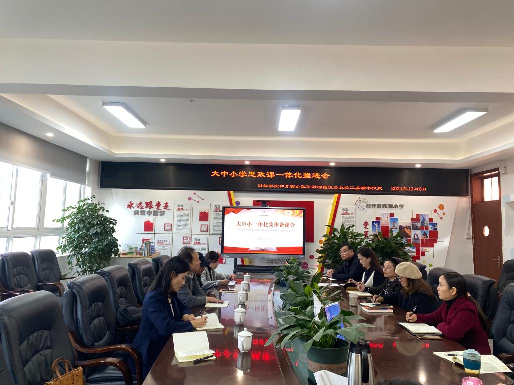 为深入贯彻落实教育部等十部门《全面推进“大思政课”建设的工作方案》(教社科〔2022〕3 号)、教育部《关于进一步加强新时代中小学思政课建设的意见》等文件精神,推动大中小思政课一体化建设走深走实,12月6日马克思主义学院党总支书记李平、黄岑岑、刘思语、通识学院尹尧、马克思主义学院退休教师左良万等一行5人赴龙泉驿经开实验小学参加“大中小学思政课一体化工作推进会”和“手拉手”集体备课会。龙泉驿经开实验小学卢永宏书记、龚琴校长、王祺副书记、张晓芹副校长、德育教育杨雪琴、崔琴、李云健、饶诗璐、黄晓燕、唐莹等老师参加了此次集体备课会。