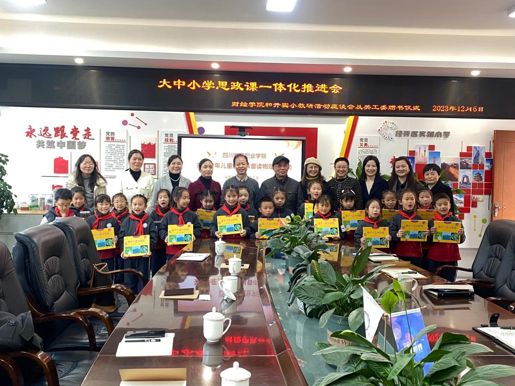 备课会结束,马院关工委向小学捐赠了100套《科学初体验》低段儿童读物,表达了财经学院对少年儿童健康成长的关爱。
