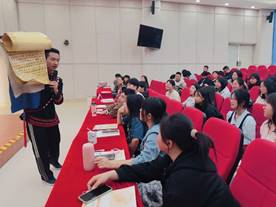 4月11日,在马克思主义学院陈鸾老师的带领下,来自我校会计和工商学院的八名少数民族学生前往2023级会计学1班,进行了一场别开生面又美轮美奂的民族文化宣讲展示活动。