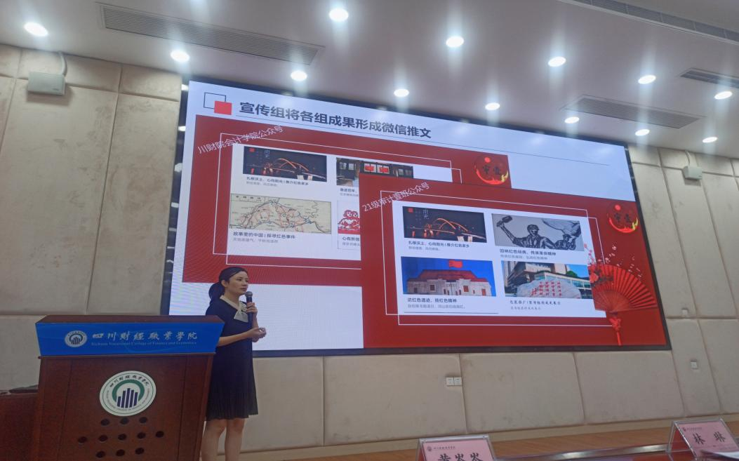 最后,学生代表一等奖优秀作品《红色成都—努力餐》组长、21级审计3班谢珂同学发言,分享学习心得和感悟。至此本学期思政实训课程完美落幕。