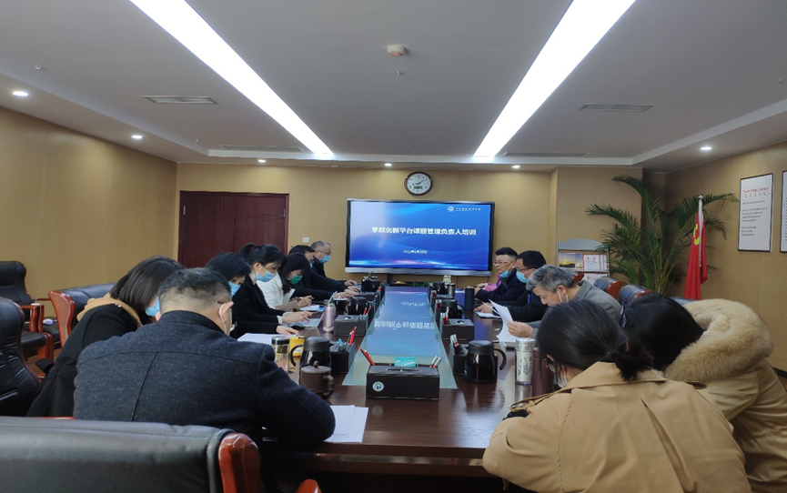 为进一步规范和加强校级科研课题管理,提高我院科研课题管理的质量和水平,学院于2022年2月28日下午14:00在明德楼913会议室组织召开创新平台课题管理负责人培训会。学院党委委员、副院长肖兆飞参加会议,各中心及平台负责人、二级学院负责人、科研与发展规划处相关工作人员参会。会议由科研与发展规划处处长裴俊主持。