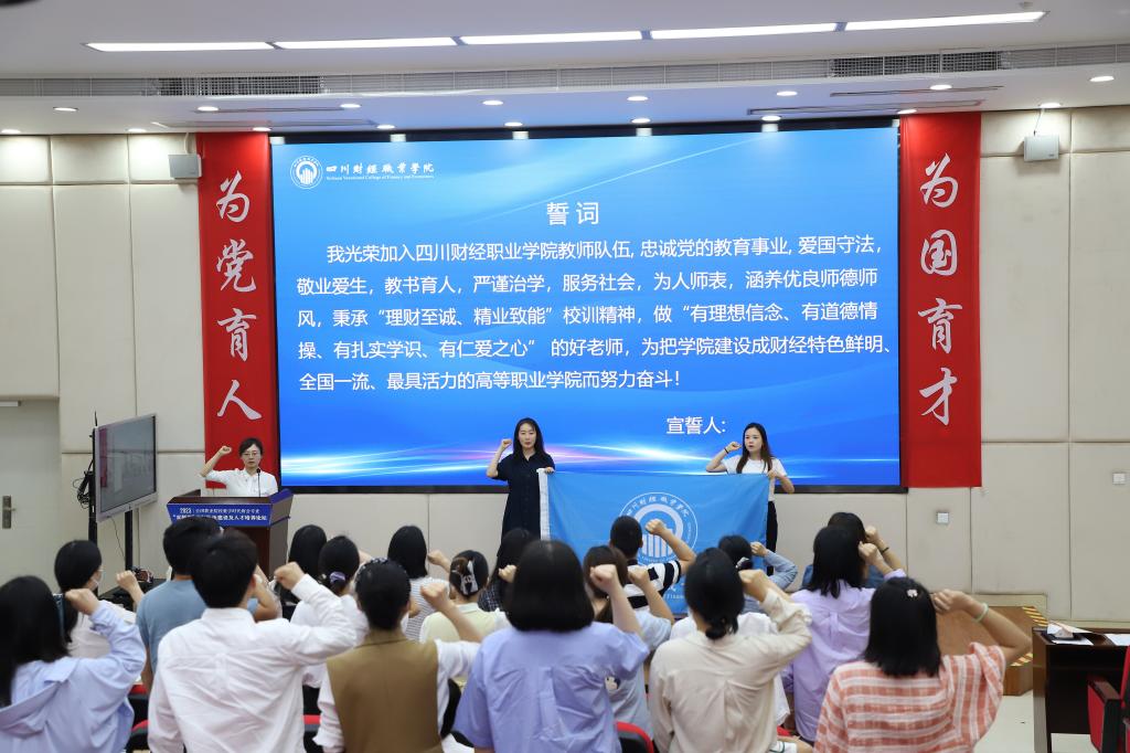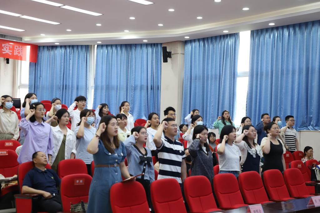 新入职教职工在领誓人喻赛萱老师的带领下庄严宣誓。