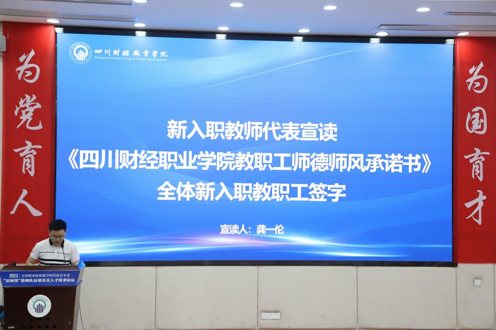 新入职教师代表龚一伦宣读《7790cnm必发集团教职工师德师风承诺书》,全体人员签字。