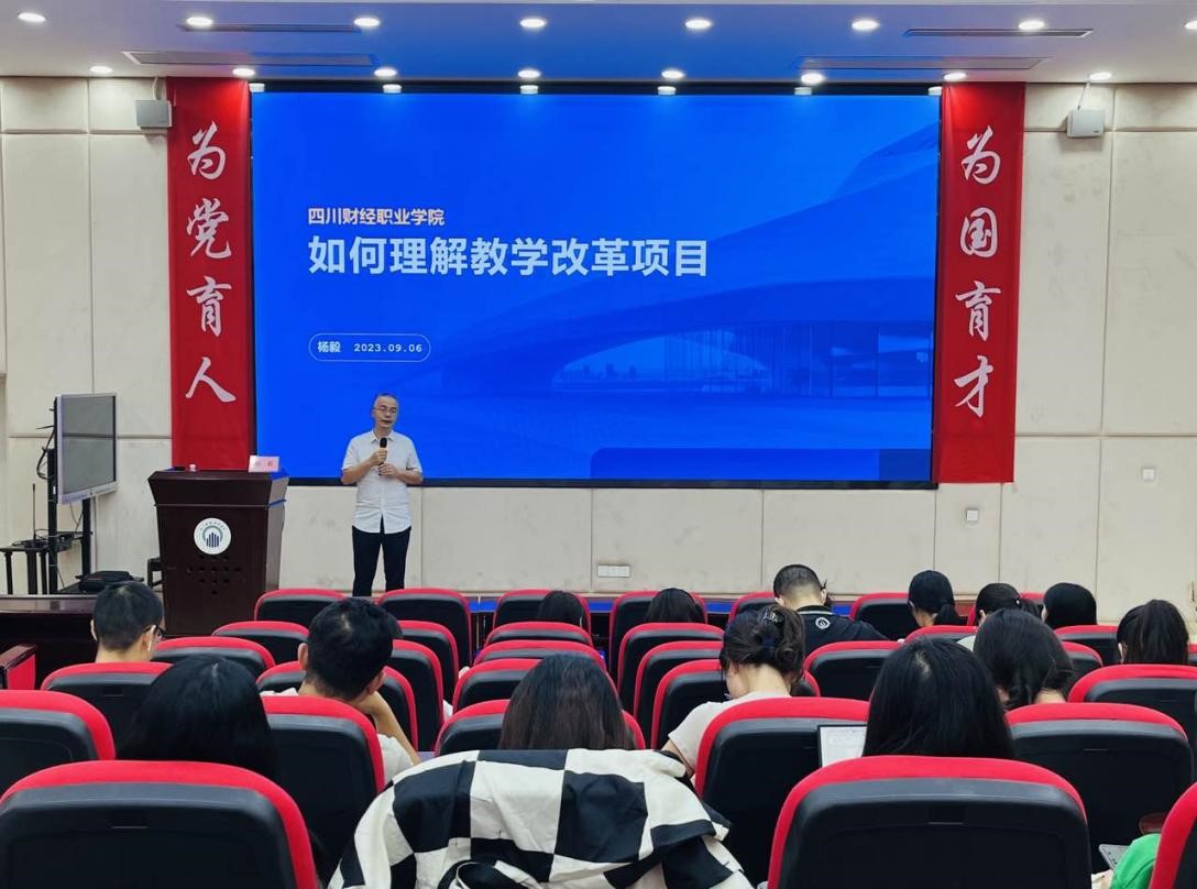 在教务专题中,教务处处长杨毅以《教学建设与改革模块培训》为题,结合高职教改的发展历程和当前教改的热点问题,系统介绍了我校课程的建设以及教改相关项目,学校在以“双高”建设、“提质培优”计划为引领,切实推动教育教学改革研究与实践中已取得多项突破。在与新老师的交流中,杨处长表示要把相对完整自主的时间、空间还给教师,回归教师本位、深耕专属领域,同时要给青年老师压担子,在教学能力大赛、优质课程建设、教材建设等多方面去出成果,亮实绩。