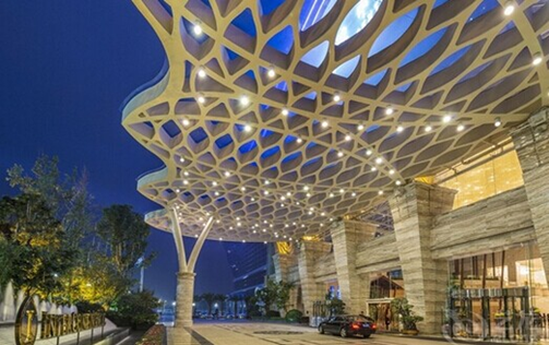 (图为成都环球中心天堂洲际大饭店门廊)