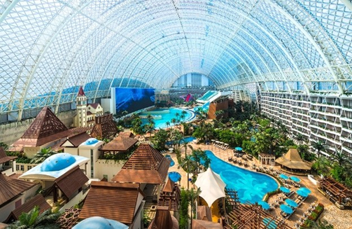 成都环球中心天堂洲际大饭店坐落于全球最大单体建筑新世纪环球中心内,酒店拥有990间豪华客房及套房,每间客房皆有独特的海景观景阳台,将细砂海岸线及室内沙滩的天堂岛海洋乐园揽入怀中,沿海岸风情小镇,栈桥码头,无边界汤池及150米室内LED屏等,壮丽的海天景象一览无余。