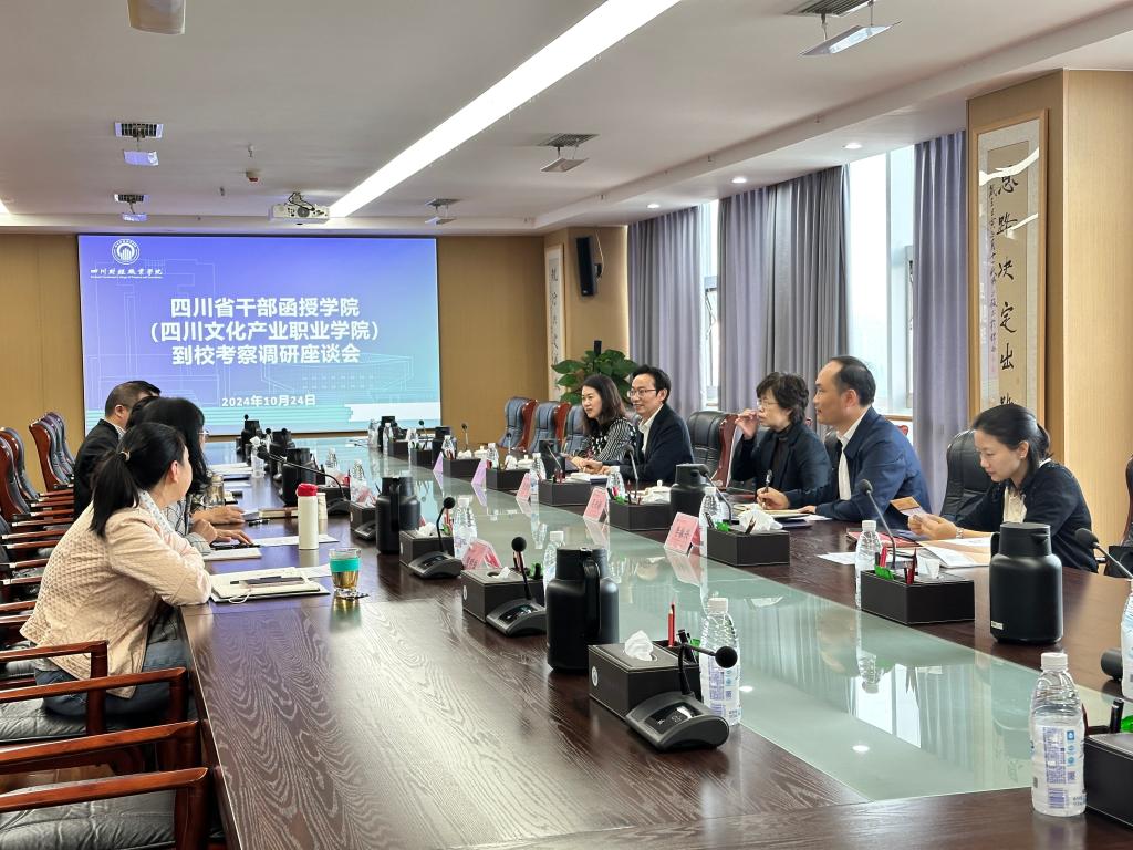 2024年10月24日下午,中共四川省委宣传部党校常务副校长、四川省干部函授学院(四川文化产业职业学院)党委书记何迎晓一行到我校考察调研。学院党委书记张华,党委委员、副院长罗潇等陪同调研。