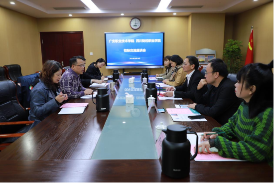 10月18日,广安职业技术学院党委委员、工会主席王甫茂一行莅临我院考察交流。学院党委委员、副院长、工会主席钟用出席座谈会,相关职能部门负责人参会。
