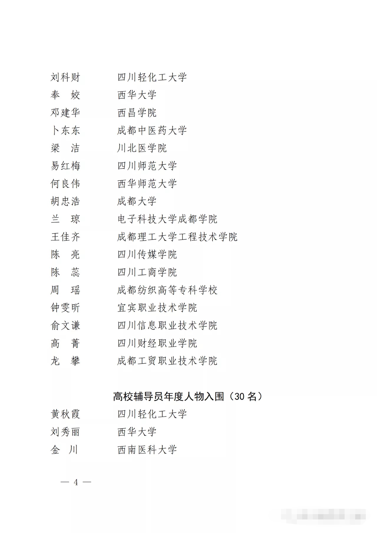 近日,从四川省教育厅获悉,我院信息学院辅导员、广元市朝天区云雾山镇中坝村驻村干部高菁老师荣获第七届全省“高校辅导员年度人物提名”。