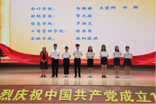 张华书记为7名国家奖学金获得者颁发获奖证书,副院长钟用、罗潇、肖兆飞为郑姝瑜等10名省级优秀毕业生代表颁发荣誉证书,并合影留恋。