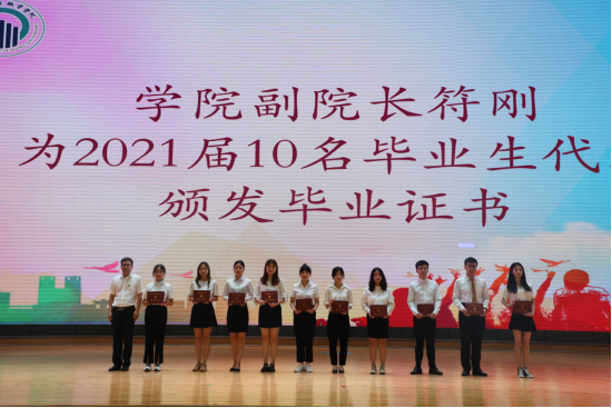 符刚副院长为2021届10名毕业生代表颁发毕业证书,并合影留恋。