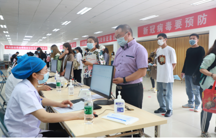 此次现场疫苗接种由龙泉驿多家医院委派的40余名医护人员负责。我院青年学生志愿者团队,积极协助发放知情同意书、收取健康信息承诺书、核对身份信息、开展留观医疗咨询等。